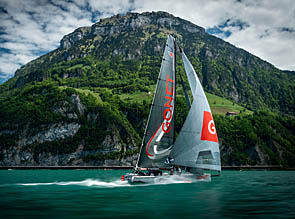 Das spektakuläre Einrumpfboot aus der Schweiz hat schon für mächtig viel Aufregung innerhalb der Foiling-Szene gesorgt. Schon bei den ersten, zunächst noch vorsichtigen Testschlägen auf dem Urnersee hat die Monofoil Gonet locker mal 25 Knoten auf die Logge gezaubert.